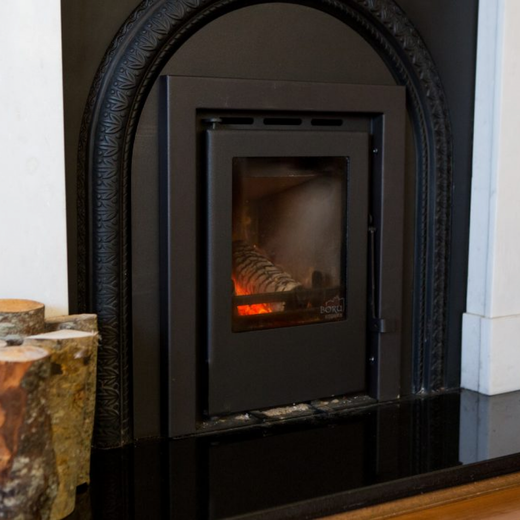 “In the past we would have closed the doors to these rooms. Now it’s 18 degrees upstairs and 20 degrees or warmer downstairs. We light the stoves for ambience and three pieces of timber would send out enough heat.”